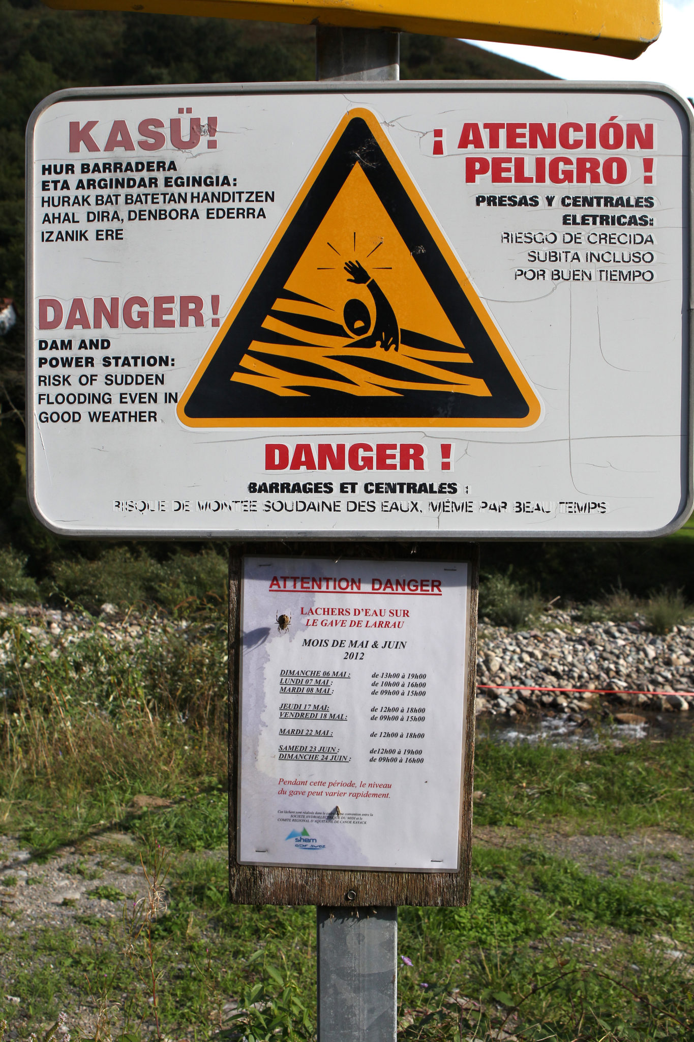Ces zones, où le niveau d’eau peut varier rapidement, sont signalées par des panneaux jaunes. Il y est strictement interdit de s’aventurer dans le lit des cours d’eau et il convient de rester sur les berges.