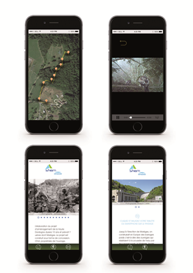 L’application regroupe des textes de présentation entrecoupés de voix off, des photographies d’archives ou contemporaines, des vidéos, les cris des rapaces qui vivent dans l’environnement du barrage, etc